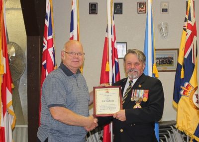 His Worship The Mayor of Petawawa Bob Sweet receiving a Certificate of Achievement on Behalf of the Town of Petawawa for Their outstanding support over the years, from Bob Howell Honours and Awards Chairman