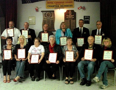The picture shows from left to right: Legion President Bob Lescombe; The Hon. Cheryl Gallant; Mayor Bob Sweet; Ralph Story; Bob McBride, and Bob Howell.