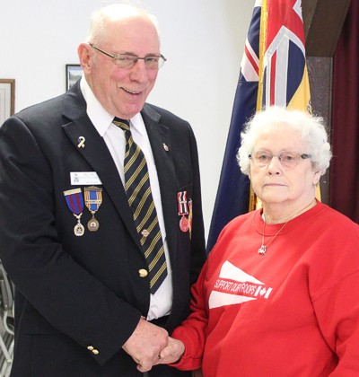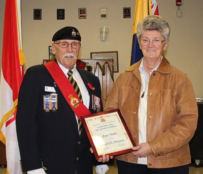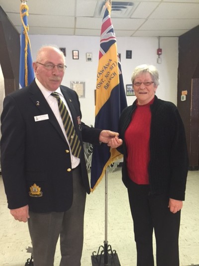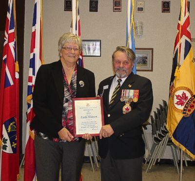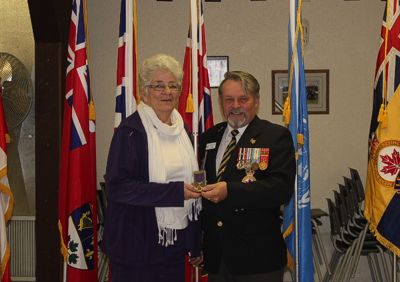 President Bob Lescombe Presenting Lorna Gorr with her Branch Service Medal