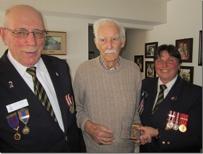 President Bob Lescombe and Honours Chairman presenting Norm Joe McGloughlin the Branch Service Medal