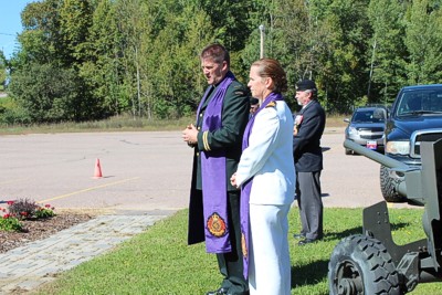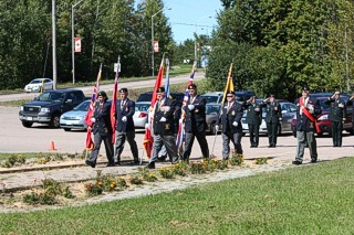 L to R: Korean Stone, Korean Vet Comrade Russ Murphy. WWI Stone Represented by CWO (Ret'd) Comrade Ralph Storey, Peacekeeping and Main Stone The Honourable Cheryl Gallant and Petawawa Mayor Bob Sweet, WWII Stone, WWII Vet Comrade Dennis Gray, and the Afghanistan Stone Afghanistan Vet WO Storey.