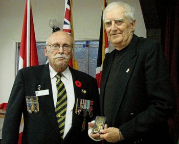 President Bob Lescombe being presented with the Branch Service Medal for all his years of support to the Branch over the years by Bob Howell