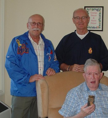 President Bob Howell(l) and Curley Andrews(r) present Ken Whitlock his 50 year membership medal.
